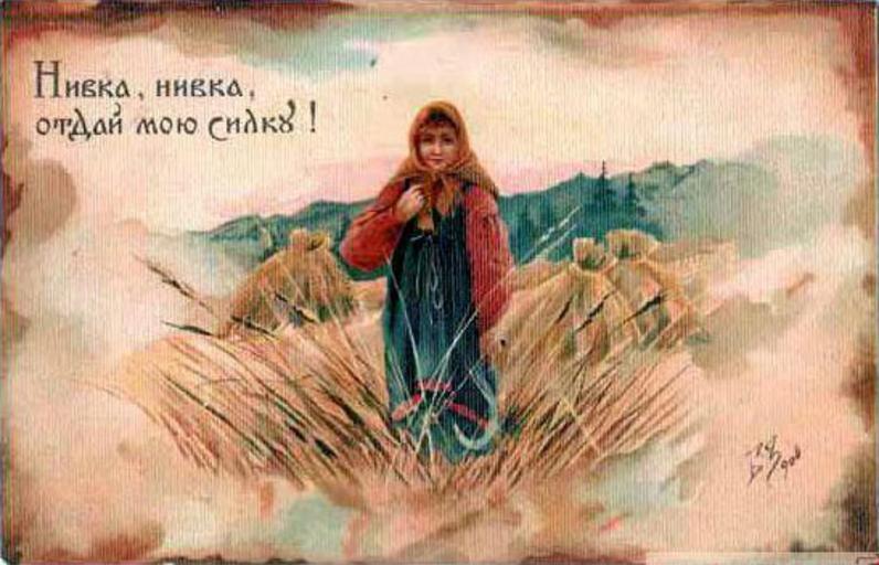 Keywords: Зворыкин Нивка.jpg ru До еволюционная отк ытка « ивка нивка отдай мою силку » sk Ruská vintage pohľadnica Niva Niva daj mi silu uk До еволюційна листівка « ивка нивка віддай мою силку » before 1917 http //www filokartist net/catalog/showgroup php id 23 pg 24 Зво ыкин Бо ис Васильевич PD-old-70 Uploaded with UploadWizard Dozhinki in Russia