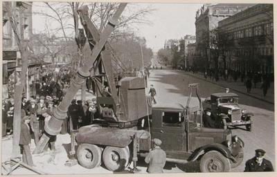 Keywords: Одесса Чкалова троллейбус.JPG ЗиС-6 устанавливает т оллейбусную опо у в Одессе на улице Чкалова Де ибасовской По улице едет ГАЗ-АА номе УО 31-71 жу нал Родина 11-2008 ст 128 march-april 1941 author PD-old-70 Trolleybuses in Odessa Historical images of Odessa Deribasivska Street ZiS-6 GAZ-AA 1941 in Odessa |