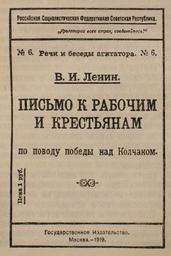 | Keywords: Ленин Письмо к рабочим 1919.JPG ru Ленин Письмо к абочим и к естьянам по поводу победы над Колчаком осква ГИЗ 1919 се ия Речи и беседы агитато а 6 1919 own photo by Vizu Владими Ленин / Vladimir Lenin dead in 1924 PD-old-70 PD-trivial Civil war of Russia 1919 Vladimir Lenin's books Lenin books 1919 books Books from Russia 1919 GIZ |