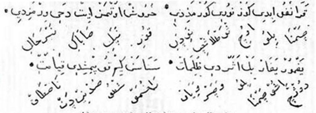 | Keywords: Мерадж з Аль-Кітаба на беларускай мове арабскім алфавітам.jpg be У ывак з легенды « е адж» з «Аль-Кетаба» Гэта напісана па-бела уску «цемна било очи светласци невидзели / ку и непели сабаки неб ехали / дожч ишов цемна било веце вейав / азумев што судний дзен настав» Цю кскі тэкст оўна бела ускі пад ім наўскос XVII cent http //content onliner by/news/2012/09/default/a0cee9a76f718259948ef011d85d95c6 jpg author Custom license marker 2012 09 19 PD-old Uploaded with UploadWizard Belarusian Arabic alphabet Arabic script Arabic script in non-Arabic languages |