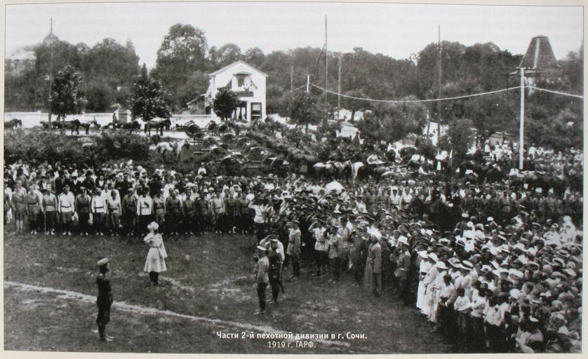 | Keywords: Белая пех див Сочи 1919.JPG Белая 2-я пехотная дивизия в го оде Сочи освобождённом от войск независимой Г узии ово оссийская область ВСЮР Че номо ская губе ния own photo / ГАРФ 1919 е указан не известен PD-old-70 Historical images of Sochi Chernomorie Governorate Volunteer Army |