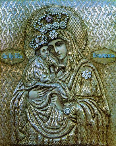 | Keywords: Почаївська ікона Богородиці Ніжності.jpg en Virgin the Affectionate Marvellous icon from Pochaiv Kyiv Dmytro Stepovyk A history of ukrainian icon in the 10th-20th centuries Kyiv 2004 ISBN 966-06-0309-6 author 18 th c 18th-century icons of Ukraine Theotokos of Pochaiv PD-Art |