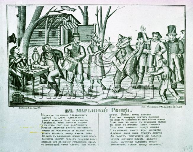 | Keywords: Лубок Гулянье в Марьиной роще 1874.jpg ru Реп одукция литог афии Гулянье в а ьиной още аботы неизвестного художника 1874 года Русский лубок Госуда ственный Исто ический музей Лубочный стих едведь с козою забавлялись И д уг на д уга удивлялись Увидел едведь Козу в са афане А Козынька ише мо гнула глазами И с этого азу они под ужились узыке и пляске вместе научились Пошли в услуженье к хозяину жить Иг ать и плясать винцо вместе пить Вожак с ба абаном п ибауточки в ал За ихнюю пляску со всех денежки б ал П ивел их к на оду аскланялся всем С п ибауткой своею плясать им велел у-тка ишка иг ай веселее А ты моя Козынька ве тись поско ее Ты иша с балалайкой в свои ст уны б якни А ты Коза в ложки с бубенцами звякни Ты иша вп исядку пляши т епачка А ты Коза-козынька танцуй казачка Я с вами же вместе буду веселиться А доб ые люди нам станут дивиться Ай скажут Топтыгин ай удалец Иг ать научился плясать молодец И Коза масте ица на ложках иг ать е уступит и ише винцо попивать 1874 http //visualrian ru/ru/site/gallery/ 423359/contexthistoryperiod 1960 author PD-art-100 Uploaded with UploadWizard Goats in art Lubok Legendary creatures 19th-century art 1874 in the Russian Empire Drawings of bears Animals with human clothing Animals acting as musicians Mummers Play in Russia Easter Bear comedy in Russia Bear guiding rite in Russia Outdoor party |