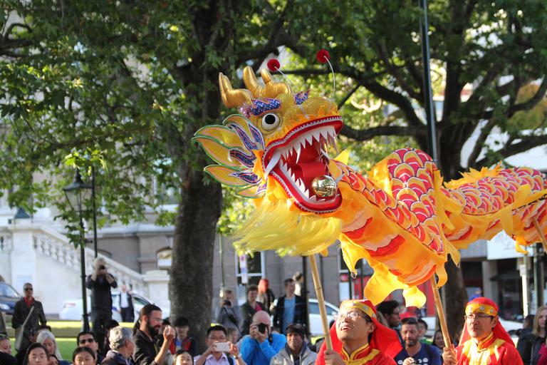 Keywords: Dragon dance (simplified Chinese: 舞龙; traditional Chinese: 舞龍; pinyin: wǔ lóng) is a form of traditional dance and performance in Chinese culture. Like the lion dance it is most often seen in festive celebrations. The dance is performed by a team of dancers who manipulate a long flexible figure of a dragon using poles positioned at regular intervals along the length of the dragon. The dance team mimics the supposed movements of this river spirit in a sinuous, undulating manner. The dragon dance is often performed during Chinese New Year. Chinese dragons are a symbol of China, and they are believed to bring good luck to people, therefore the longer the dragon in the dance, the more luck it will bring to the community.[1] The dragons are believed to possess qualities that include great power, dignity, fertility, wisdom and auspiciousness. The appearance of a dragon is both frightening and bold but it has a benevolent disposition, and so eventually became an emblem to represent imperial authority. The movements in a performance traditionally symbolize historical roles of dragons demonstrating power and dignity. en.wikipedia.org/wiki/Dragon_dance Dragon dance (simplified Chinese: 舞龙; traditional Chinese: 舞龍; pinyin: wǔ lóng) is a form of traditional dance and performance in Chinese culture. Like the lion dance it is most often seen in festive celebrations. The dance is performed by a team of dancers who manipulate a long flexible figure of a dragon using poles positioned at regular intervals along the length of the dragon. The dance team mimics the supposed movements of this river spirit in a sinuous, undulating manner. The dragon dance is often performed during Chinese New Year. Chinese dragons are a symbol of China, and they are believed to bring good luck to people, therefore the longer the dragon in the dance, the more luck it will bring to the community.[1] The dragons are believed to possess qualities that include great power, dignity, fertility, wisdom and auspiciousness. The appearance of a dragon is both frightening and bold but it has a benevolent disposition, and so eventually became an emblem to represent imperial authority. The movements in a performance traditionally symbolize historical roles of dragons demonstrating power and dignity. en.wikipedia.org/wiki/Dragon_dance |