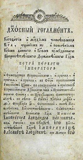 | Keywords: Духовный регламент.jpg ru Титульный лист «Духовного егламента» изданного импе ато ом Пет ом I en Title page of the Ecclesiastical Regulations published by Emperor Peter I of Russia 1721 http //historydoc edu ru/catalog asp cat_ob_no ob_no 12776 Peter I of Russia Custom license marker 2013 04 21 PD-old-100 Uploaded with UploadWizard Censorship in Russian Empire Russian Orthodox Church Peter I of Russia | ||||