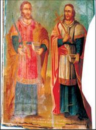 | Keywords: Казьма і Даміян.jpg be Казьма і Даміян Выява суп аваджаецца ахвя ным надпісам Сія Икона пост оенная Ста ательствомъ К естьянъ Де евни Площово октяб я 16 дня 1850 Года 1850 http //www kimpress by/index phtml page 2 id 976 mode print author Custom license marker 2013 07 01 PD-old-100 Uploaded with UploadWizard 1850 paintings in Belarus 19th-century icons of Belarus Icons of Cosmas and Damian 19th-century paintings in the Old Belarusian History Museum | ||||