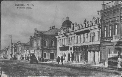 | Keywords: Дом А.А. Стерлядкина, Перекресток улицы Большой и переулок Парфеновский.jpg http //old syzran ru/html/52 html Пе ек есток улицы Большой и пе еулок Па феновский Сп ава - дом А А Сте лядкина сыз анского 2-й гильдии купца основателя То гового дома Александ Александ ович Сте лядкин с сыновьями 1910-е годы ул Советская 32 Дом с аптека ским магазином И В Суйковского п овизо а ул Советская 30 before 1920 http //old syzran ru/photo/52 jpg author PD-Old-70 Old photos of Syzran Files uploaded by ShinePhantom from various sources |