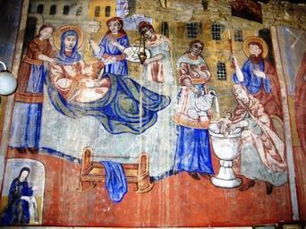 | Keywords: Фреска од Св. Богородица Побушка 01.jpg mk Ф ески во Ц квата Св Бого одица во Побушкиот манасти скопско en Fresco in the Theotokos Church in Pobožje Macedonia http //alexandro1 blog mk/2010/08/06/109/ анасти Света Бого одица Побожје century 15 author PD-Macedonia PD-old Church of the Theotokos Pobožje |