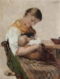| Keywords: Γεώργιος Ιακωβίδης - Μητρική στοργή.jpg Artwork creator Georgios Jakobides oil canvas cm 28 22 accession number object history Sale Sotheby's London 23 November 1988 lot 322<br/> Private Collection Athens exhibition history Athens National Gallery and Alexandros Soutzos Museum Jakobides Retrospective November 2005 - January 2006 credit line G Jakobides upper right signature http //www sothebys com/en/auctions/ecatalogue/2008/the-greek-sale-l08100/lot 7 html Sotheby's London 17 April 2008 lot 7 PD-old-auto-1923 1932 DEFAULTSORT Georgios Jakobides; Mother and child; Sotheby's 2008 Georgios Jakobides Mother and child in art Images from Sotheby's |
