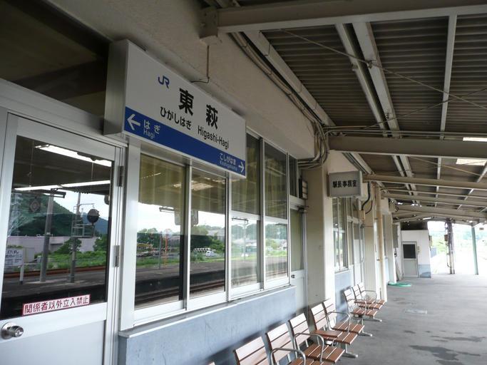 Keywords: 東萩駅看板.JPG Higashi-Hagi Station sign 萩駅の Own ペ 家音 2009-07-30 Train station signs in Yamaguchi prefecture Higashi-Hagi Station