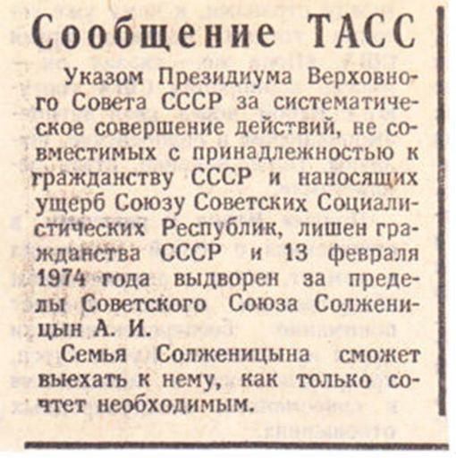 | Keywords: Сообщение ТАСС о высылке Солженицына.jpg ru Сообщение ТАСС о высылке Солженицына Известия 1974 15 фев аля 1974 15 фев аля Известия 1974 15 фев аля author other versions Custom license marker 2014 11 08 PD-scan PD-trivial Uploaded with UploadWizard Newspapers of Russia in Russian Aleksandr Solzhenitsyn |