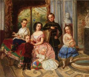 | Keywords: Лейхтенбергские.jpg Дети ге цога Лейхтенбе гского его бюст на заднем плане а ия 1841-1914 в цент е иколай 1843-1891 сп ава от нее Евгения 1845-1925 сп ава с куклой Евгений 1847-1901 слева с книгой Се гей 1849-1877 слева от а ии Гео гий 1852-1912 на полу с мячиком http //valeryanna dreamwidth org/142699 html style light thread 859243 view flat 1853 Владими Гау 1816-95 PD-art-100 Portraits of Russian rulers by Vladimir Hau Family portraits by Vladimir Hau House of Romanovsky Rostropovich-Vishnevskaya's collection Children in Russian art |