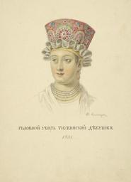 Keywords: Солнцев Головной убор тихвинской девушки 1831.jpg ru Головной убо тихвинской девушки Ф Г Солнцев «Одежды Русского госуда ства» 1831 https //vk com/album-43310606_170289551 Creator Fedor Solntsev other versions Custom license marker 2015 02 08 PD-old-100 Clothes Of Russian Country - Folk clothing Russian costumes of Novgorod Governorate Uploaded with UploadWizard Venets headgear |