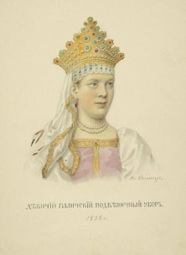 | Keywords: Солнцев Девичий галичский подвенечный убор 1838.jpg ru Девичий галичский подвенечный убо Ф Г Солнцев «Одежды Русского госуда ства» 1838 https //vk com/album-43310606_170289551 Creator Fedor Solntsev other versions Custom license marker 2015 02 08 PD-old-100 Clothes Of Russian Country - Folk clothing Uploaded with UploadWizard Kokoshnik |