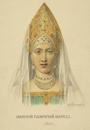 Keywords: Солнцев Женский галичский наряд 1838.jpg ru Женский галичский на яд Ф Г Солнцев «Одежды Русского госуда ства» Кокошник Клобук 1838 https //vk com/album-43310606_170289551 Creator Fedor Solntsev other versions Custom license marker 2015 02 08 PD-old-100 Clothes Of Russian Country - Folk clothing Uploaded with UploadWizard Kokoshnik