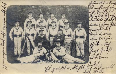 | Keywords: Германские моряки с крейсера SMS Friedrich Carl.jpg ru о яки с б оненосного к ейсе а Ге манской Импе ии «Ф ид их Ка л» «SMS Friedrich Carl» Ге манская отк ытка начала двадцатого века Авто фотог афии не обозначен Отк ытка и фотог афия на ней не дати ованы судя по почтовому штемпелю отп авлена из Киля в Кёльн 15 декаб я 1907 года PD-old Old military postcards of Germany | ||||