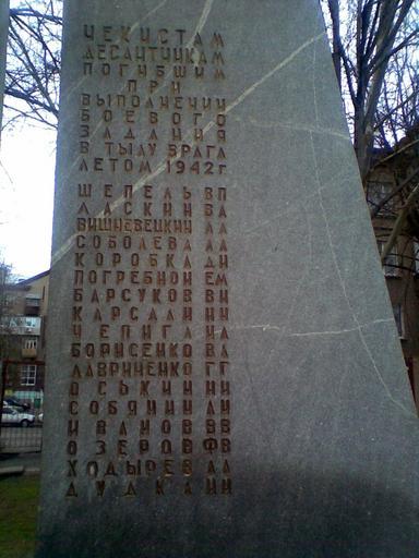 | Keywords: Запорожье Памятник группе чекистов Шепеля 188.jpg  ru Памятник погибшим чекистам- азведчикам г уппы Шепеля В П десанти ованым в окупи ованое Запо ожье в 1942 году Own Mixabest 2010-04-11 47 48 32 N 35 11 7 E Monuments and memorials in Zaporizhia World War II memorials in Zaporizhia Oblast |