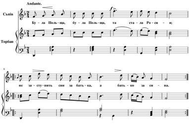 | Keywords: Була Польща та стала Росия.svg uk Ілюст ація до статті иколи Лисенка а одні музичні ст ументи на Вк аїнї оти на одної пісні Була Польща 1894-04-13 Зо я часопис 1894 07 с 161 а одна; Ф анц Відо т; икола Лисенко other versions Часопис Зо я 1894 07 pdf Hidden background ECECEC; white;color black border 1px grey solid; padding 2px Created by MuseScore <nowiki> < xml version 1 0 encoding UTF-8 > <museScore version 2 06 > <programVersion>2 0 2</programVersion> <programRevision>f51dc11</programRevision> <Score> <LayerTag id 0 tag default ></LayerTag> <currentLayer>0</currentLayer> <Synthesizer> </Synthesizer> <Division>480</Division> <Style> <TextStyle> <halign>center</halign> <valign>baseline</valign> <xoffset>0</xoffset> <yoffset>6</yoffset> <offsetType>spatium</offsetType> <name>Lyrics Odd Lines</name> <family>FreeSerif</family> <size>11</size> <bold>1</bold> <sizeIsSpatiumDependent>1</sizeIsSpatiumDependent> </TextStyle> <TextStyle> <halign>right</halign> <valign>center</valign> <offsetType>absolute</offsetType> <name>Instrument Name Long </name> <family>FreeSerif</family> <size>12</size> <bold>1</bold> <sizeIsSpatiumDependent>1</sizeIsSpatiumDependent> </TextStyle> <page-layout> <page-height>799 37</page-height> <page-width>1190 55</page-width> <page-margins type even > <left-margin>5 66929</left-margin> <right-margin>5 66929</right-margin> <top-margin>56 6929</top-margin> <bottom-margin>113 386</bottom-margin> </page-margins> <page-margins type odd > <left-margin>5 66929</left-margin> <right-margin>5 66929</right-margin> <top-margin>0</top-margin> <bottom-margin>0</bottom-margin> </page-margins> </page-layout> <Spatium>1 764</Spatium> </Style> <showInvisible>1</showInvisible> <showUnprintable>1</showUnprintable> <showFrames>1</showFrames> <showMargins>0</showMargins> <metaTag name arranger ></metaTag> <metaTag name composer > а одна</metaTag> <metaTag name copyright ></metaTag> <metaTag name creationDate >2015-11-25</metaTag> <metaTag name lyricist > а одна</metaTag> <metaTag name movementNumber ></metaTag> <metaTag name movementTitle ></metaTag> <metaTag name platform >Microsoft Windows</metaTag> <metaTag name poet ></metaTag> <metaTag name source ></metaTag> <metaTag name translator ></metaTag> <metaTag name workNumber ></metaTag> <metaTag name workTitle >Була Польща та стала Росия</metaTag> <PageList> <Page> <System> </System> <System> </System> </Page> </PageList> <Part> <Staff id 1 > <StaffType group pitched > <name>stdNormal</name> </StaffType> <bracket type -1 span 0 /> </Staff> <trackName>Voice</trackName> <Instrument> <longName>Сьпів</longName> <trackName>Voice</trackName> <minPitchP>36</minPitchP> <maxPitchP>94</maxPitchP> <minPitchA>40</minPitchA> <maxPitchA>79</maxPitchA> <instrumentId>voice vocals</instrumentId> <Articulation> <velocity>100</velocity> <gateTime>100</gateTime> </Articulation> <Articulation name staccatissimo > <velocity>100</velocity> <gateTime>33</gateTime> </Articulation> <Articulation name staccato > <velocity>100</velocity> <gateTime>50</gateTime> </Articulation> <Articulation name portato > <velocity>100</velocity> <gateTime>67</gateTime> </Articulation> <Articulation name tenuto > <velocity>100</velocity> <gateTime>100</gateTime> </Articulation> <Articulation name marcato > <velocity>120</velocity> <gateTime>67</gateTime> </Articulation> <Articulation name sforzato > <velocity>120</velocity> <gateTime>100</gateTime> </Articulation> <Channel> <program value 52 /> <synti>Fluid</synti> </Channel> </Instrument> </Part> <Part> <Staff id 2 > <StaffType group pitched > <name>stdNormal</name> </StaffType> <defaultClef>G8vb</defaultClef> <bracket type 1 span 2 /> </Staff> <Staff id 3 > <StaffType group pitched > <name>stdNormal</name> </StaffType> <defaultClef>G8vb</defaultClef> <bracket type -1 span 0 /> </Staff> <trackName>Acoustic Guitar</trackName> <Instrument> <longName>То бан</longName> <trackName>Acoustic Guitar</trackName> <minPitchP>40</minPitchP> <maxPitchP>83</maxPitchP> <minPitchA>40</minPitchA> <maxPitchA>83</maxPitchA> <instrumentId>pluck guitar acoustic</instrumentId> <clef>G8vb</clef> <StringData> <frets>19</frets> <string>40</string> <string>45</string> <string>50</string> <string>55</string> <string>59</string> <string>64</string> </StringData> <Articulation> <velocity>100</velocity> <gateTime>100</gateTime> </Articulation> <Articulation name staccatissimo > <velocity>100</velocity> <gateTime>33</gateTime> </Articulation> <Articulation name staccato > <velocity>100</velocity> <gateTime>50</gateTime> </Articulation> <Articulation name portato > <velocity>100</velocity> <gateTime>67</gateTime> </Articulation> <Articulation name tenuto > <velocity>100</velocity> <gateTime>100</gateTime> </Articulation> <Articulation name marcato > <velocity>120</velocity> <gateTime>67</gateTime> </Articulation> <Articulation name sforzato > <velocity>120</velocity> <gateTime>100</gateTime> </Articulation> <Channel> <program value 25 /> <synti>Fluid</synti> </Channel> </Instrument> </Part> <Staff id 1 > <Measure number 1 > <KeySig> <accidental>-1</accidental> </KeySig> <TimeSig> <sigN>2</sigN> <sigD>4</sigD> <showCourtesySig>1</showCourtesySig> </TimeSig> <Tempo> <tempo>1 16667</tempo> <text>Andante </text> </Tempo> <Chord> <durationType>eighth</durationType> <Lyrics> <syllabic>begin</syllabic> <text>Бу</text> </Lyrics> <Note> <pitch>65</pitch> <tpc>13</tpc> </Note> </Chord> <HairPin id 2 > <subtype>0</subtype> <Segment> <subtype>0</subtype> <off2 x -10 5 y 0 /> <pos x 26 2048 y -2 25 /> </Segment> </HairPin> <Chord> <BeamMode>no</BeamMode> <durationType>eighth</durationType> <Lyrics> <syllabic>end</syllabic> <text>ла</text> </Lyrics> <Note> <pitch>67</pitch> <tpc>15</tpc> </Note> </Chord> <Chord> <BeamMode>no</BeamMode> <durationType>eighth</durationType> <Lyr