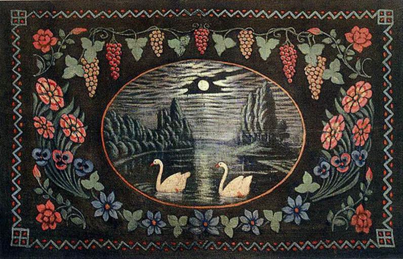Keywords: Дыванок з вінаградам (Месяцавая ноч).jpg be 1940-я гг атэ 'ял і тэхніка палатно алей Паме ы 135 х 193 Паходжанне Глыбоцкі -н Віцебская вобл есцазнаходжанне Гісто ыка-культу ны музей-запаведнік Заслаўе 1940ths http //spadczyna com/art/b_d_drazdovich htm Jazep Drazdovič Custom license marker 2012 12 11 PD-Belarus Carpets by Jazep Drazdovič Uploaded with UploadWizard Grapes in art Swans in textile art Swimming swans in art