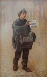 Keywords: Я. Кругер. Газетчык.JPG be Газетчык Палатно на ÐºÐ°Ñ Ð´Ð¾Ð½Ðµ алей 1907 own photo Jankieĺ Kruhier Custom license marker 2013 04 02 PD-Belarus Uploaded with UploadWizard 1907 paintings from Russia 20th-century portrait paintings of boys in the National Arts Museum of the Republic of Belarus Paintings by Jankieĺ Kruhier 20th-century oil paintings of men at full length Oil paintings of boys |