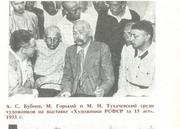 | Keywords: Бубнов Горький Тухачевский.jpg Анд ей Бубнов ru аксим Го ький и ихаил Тухачевский на выставке художников в 1933 году en Andrei Bubnov Maxim Gorky and Mikhail Tukhachevsky at art exhibition 1933 2013-07-20 13 01 10 http //www tukhachevsky ru/gallery/; cites Щетинов Ю А Ста ков Б А К асный ма шал осква « олодая гва дия» 1990 С 229 Not specified published anonymously Custom license marker 2013 07 20 PD-Russia Uploaded with UploadWizard Maxim Gorky in photography Andrei Bubnov Mikhail Tukhachevsky |