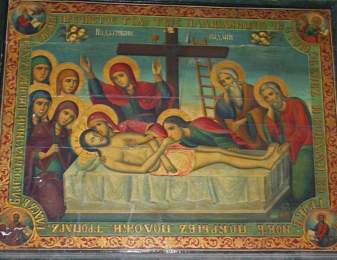 | Keywords: Оплакување на Исус Лазарополе.png mk Оплакување на Исус Икона во ц квата Св Гео ги во Лаза ополе акедонија http //antefoto blogspot com/2009/07/village-lazaropole html author 1907 Anonymous-EU Frescos of the lamentation of Christ St George's Church Lazaropole Icons of the Republic of Macedonia |