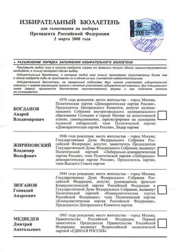 MAKE A MEME View Large Image Избирательный бюллетень для голосования на выборах президента России 2 марта 2008 года.jpg Russian Отскани ованный бюллетень для ...