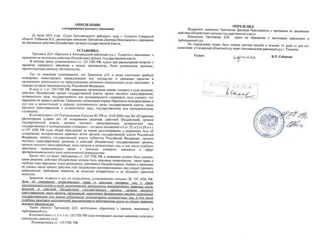 | Keywords: ОПРЕДЕЛЕНИЕ (МИРОВОГО) СУДА ТОЛЬЯТТИ О ЛЕГАЛИЗАЦИИ ПРОСТИТУЦИ.jpeg ru Оп еделение ми ового Автозаводского айонного Суда Тольятти по легализации п оституции в России на п аво п едоставление интимных сексуальных услуг населению В кото ом Суд гово ит что данное Дело подсудно А бит ажному Суду Сама ской области en The definition of the world Court of city Togliatti on the legalization of prostitution in Russia providing for the right of intimate sexual services to the population In which the Court says that this Case is within the jurisdiction of the Arbitration Court of the Samara region 2014-06-20 own Dgeise Official documents PD-RU-exempt cc-by-sa-4 0 Prostitution in Russia Court documents |
