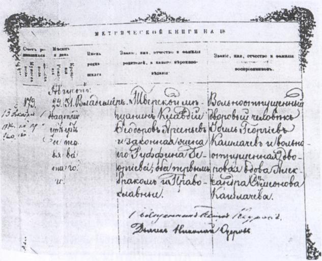 View Original:Страница_метрической_книги_с_записью_о_рождении_Владимира_Арсеньева.jpg (1606x1298)