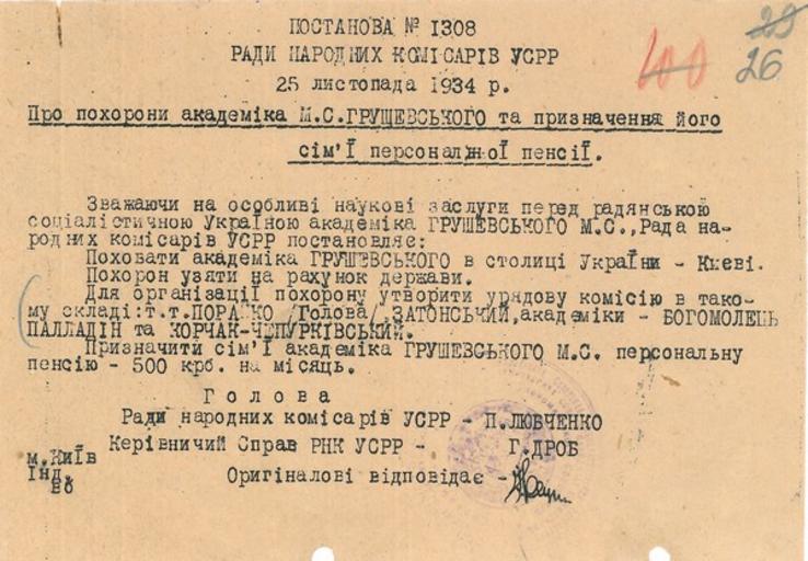 Keywords: Постанова Ради Народних Комісарів УСРР «Про похорони академіка М. Грушевського та призначення його сім’ї персональної пенсії».jpg uk 1934 листопада 25 Постанова Ради а одних Коміса ів УСРР П о похо они академіка Г ушевського та п изначення його сім ї пе сональної пенсії ЦДАГО Ук аїни ф 1 оп 20 сп 6463 а к 26 1934-11-25 http //www archives gov ua/Sections/Grushevsky/index php 95 photo Рада а одних Коміса ів УСРР other versions Custom license marker 2016 10 02 PD-Ukraine Documents of Mykhaylo Hrushevskyy |