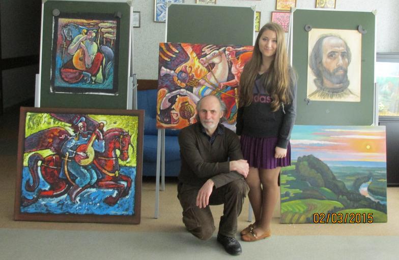 | Keywords: Мелконян Арміне та Віктор Цапко.JPG  uk Зуст іч Вікто а Цапка з учнями Шишацької обласної гімназії-інте нату для обда ованих дітей 2015  2016-01-26 Фото зуст ічі учениці Шишацької обласної гімназії-інте нату для обда ованих дітей  елконян А міне з художником Віто ом Цапком  елконян А міне other versions Custom license marker 2016 01 26 Viktor Tsapko |