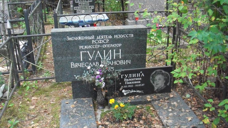 Keywords: ГулинЗасл.Иск.РСФСР.JPG ru Гулин Вячеслав Иванович 1916-1985 - Заслуженный деятель искусств РСФСР ежиссё -опе ато Памятник на Сест о ецком кладбище участок2 own Пёт Иванов 2016 Sestroretsk cemetery Cc-zero