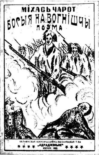 | View Original: | М. Філіповіч. Вокладка кнігі «Босыя на вогнішчы» М. Чарота. 1922.jpg (382x592) | |||