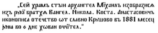 Keywords: Свети Архангел Михаил Ресава ктиторски надпис.gif en Ктито ски надпис в Свети А хангел ихаил в Ресава 1881 http //www cdnh edu mk/multimedija2006/Kavadarci_1/Kavadarci/crkvi/arhangel_mihail_resava htm Вангел икола и Коста Атанасови other versions Custom license marker 2016 05 21 PD-old Churches in the Republic of Macedonia |