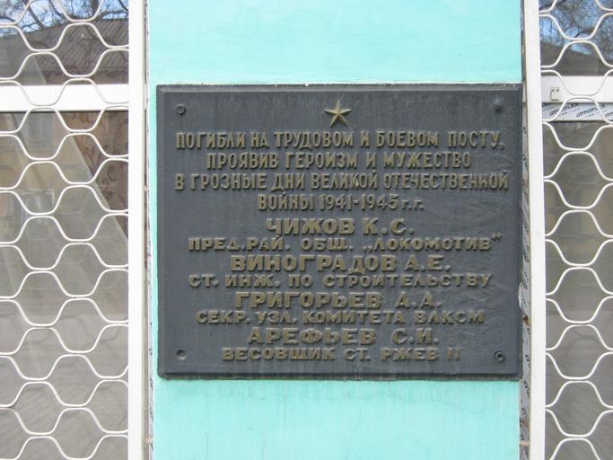 View Original:Мемориальная доска на здании управления станции Ржев-II.jpg (3648x2736)