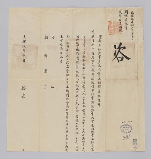 | Keywords: 조선-청 외교문서(자문) 121.jpg 고종 20년 1883 2월 12 에 청국 예 에 조선국왕에게 보내 온 문 조선에 파견 연공사신 정사 판중추 사 심 등 행 12월 26 에 북경에 도착하 다고 알리는 내용 다 2016-07-18 http //www nl go kr/nl/search/SearchDetail nl category_code ct service KOLIS vdkvgwkey 1130205 colltype DAN_OLD place_code_info 172 place_name_info EB 94 94 EC A7 80 ED 84 B8 EC 97 B4 EB 9E 8C EC 8B A4 manage_code MA shape_code B refLoc null category srchFlag Y h_kwd E5 8F A4 E6 9C 9D51- EB 8B A428-179 lic_yn N mat_code RB 국립중앙도 조선국왕 청국예 other versions PD-Art Books from National Library of Korea Books from Korea 1883 in Relations of the Joseon Dynasty and the Qing Dynasty |