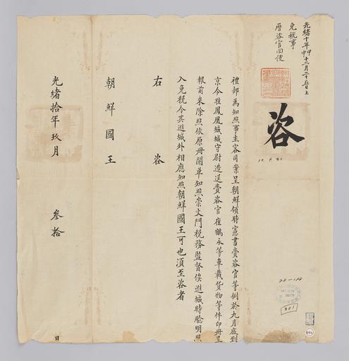 Keywords: 조선-청 외교문서(자문) 133.jpg 고종 21 1884 년 9월 30 에 청 예 에 조선 국왕에게 보낸 문 헌 재자 時憲書賫咨官 학영 崔鶴永 등 거재화물 車載貨物 에 면세 免稅 사실 알리는 문 다 2016-07-18 http //www nl go kr/nl/search/SearchDetail nl category_code ct service KOLIS vdkvgwkey 1130122 colltype DAN_OLD place_code_info 172 place_name_info EB 94 94 EC A7 80 ED 84 B8 EC 97 B4 EB 9E 8C EC 8B A4 manage_code MA shape_code B refLoc null category srchFlag Y h_kwd E5 8F A4 E6 9C 9D51- EB 8B A428-198 lic_yn N mat_code RB 국립중앙도 조선국왕 청국예 other versions PD-Art Books from National Library of Korea Books from Korea 1884 in Relations of the Joseon Dynasty and the Qing Dynasty |