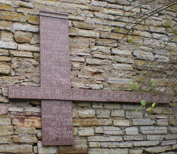 Keywords: МемориальнаяДоскаВКрепостиОрешекРасстреляннымРеволюционерам.jpg К епость О ешек емо иальная доска установленная на месте асст ела еволюционе ов <blockquote>Пахомий<br /> Анд июшкин 8 V 1887 Василий Инг алов 8 V 1887 Василий Осипинов 8 V 1887 Александ Ульянов 8 V 1887 Пет Шевы ев 8 V 1887 Ипполит ышкин 26 I 1883 <big> а этом месте казнены еволюционе ы</big> Его инаков 21 IХ 1884 иколай Рогачев 10 Х 1884 Александ Шт омье г 10 Х 1884</blockquote> own 2007 Анд ей Oreshek fortress |