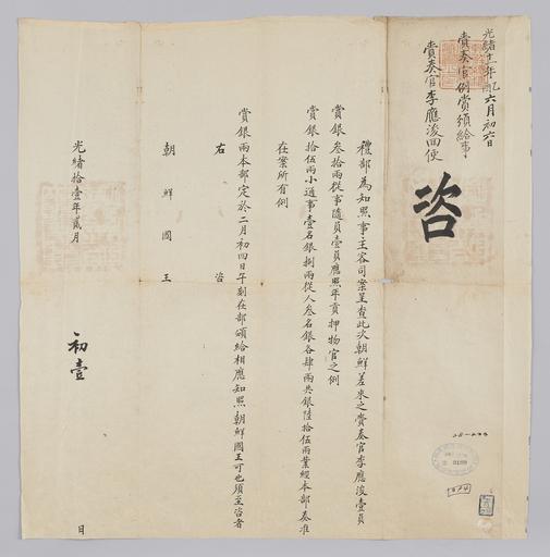 | Keywords: 조선-청 외교문서(자문) 165.jpg 고종 22년 1885 2월 1 에 청국 예 에 조선국왕에게 보내 온 문 조선에 파견 재주 應浚 등 사신 행에게 65냥 포상하 다고 알리는 내용 다 2016-07-19 http //www nl go kr/nl/search/SearchDetail nl category_code ct service KOLIS vdkvgwkey 1130220 colltype DAN_OLD place_code_info 172 place_name_info EB 94 94 EC A7 80 ED 84 B8 EC 97 B4 EB 9E 8C EC 8B A4 manage_code MA shape_code B refLoc null category srchFlag Y h_kwd E5 8F A4 E6 9C 9D51- EB 8B A428-233 lic_yn N mat_code RB 국립중앙도 조선국왕 청국예 other versions PD-Art Books from National Library of Korea Books from Korea 1885 in Relations of the Joseon Dynasty and the Qing Dynasty |