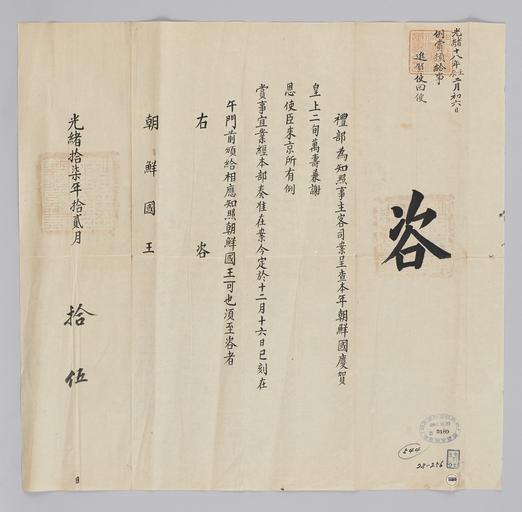 | Keywords: 조선-청 외교문서(자문) 183.jpg 고종 28년 1891 12월 15 에 청국 예 에 조선국왕에게 보내 온 문 조선에 파견 사신 행에게 예에 따 포상하 알리는 내용 다 2016-07-19 http //www nl go kr/nl/search/SearchDetail nl category_code ct service KOLIS vdkvgwkey 1130268 colltype DAN_OLD place_code_info 172 place_name_info EB 94 94 EC A7 80 ED 84 B8 EC 97 B4 EB 9E 8C EC 8B A4 manage_code MA shape_code B refLoc null category srchFlag Y h_kwd E5 8F A4 E6 9C 9D51- EB 8B A428-256 lic_yn N mat_code RB 국립중앙도 조선국왕 청국예 other versions PD-Art Books from National Library of Korea Books from Korea 1891 in Relations of the Joseon Dynasty and the Qing Dynasty |