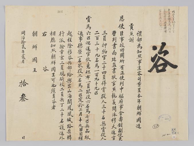 | Keywords: 조선-청 외교문서(자문) 222.jpg 고종 10년 1873 2월 13 에 청국 예 에 조선국왕에게 보내 온 문 진공 겸 사 사 온 사신 정사 수현 사 남정 장 민영목 등 행 마치고 돌아간다고 알리는 내용 다 2016-07-19 http //www nl go kr/nl/search/SearchDetail nl category_code ct service KOLIS vdkvgwkey 1130353 colltype DAN_OLD place_code_info 172 place_name_info EB 94 94 EC A7 80 ED 84 B8 EC 97 B4 EB 9E 8C EC 8B A4 manage_code MA shape_code B refLoc null category srchFlag Y h_kwd E5 8F A4 E6 9C 9D51- EB 8B A428-300 lic_yn N mat_code RB 국립중앙도 조선국왕 청국예 other versions PD-Art Books from National Library of Korea Books from Korea 1873 in Relations of the Joseon Dynasty and the Qing Dynasty |