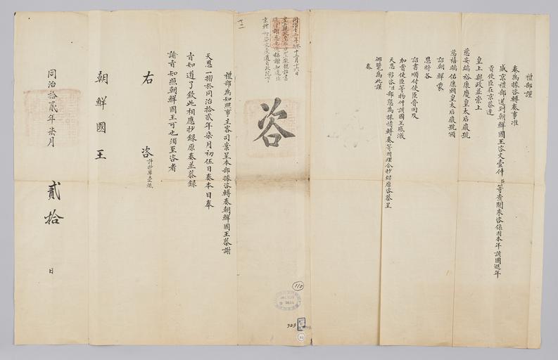 | Keywords: 조선-청 외교문서(자문) 245.jpg 고종 10년 1873 7월 20 에 청국 예 에 조선국왕에게 보내 온 문 황상 정과 양궁 황 후 호 상 진하하러 간 연공사신 편에 조 포상 것에 해 조선국왕 보낸 사 자문 황 에게 아뢰었 알리는 내용 다 2016-07-19 http //www nl go kr/nl/search/SearchDetail nl category_code ct service KOLIS vdkvgwkey 1130332 colltype DAN_OLD place_code_info 172 place_name_info EB 94 94 EC A7 80 ED 84 B8 EC 97 B4 EB 9E 8C EC 8B A4 manage_code MA shape_code B refLoc null category srchFlag Y h_kwd E5 8F A4 E6 9C 9D51- EB 8B A428-323 lic_yn N mat_code RB 국립중앙도 조선국왕 청국예 other versions PD-Art Books from National Library of Korea Books from Korea 1873 in Relations of the Joseon Dynasty and the Qing Dynasty |