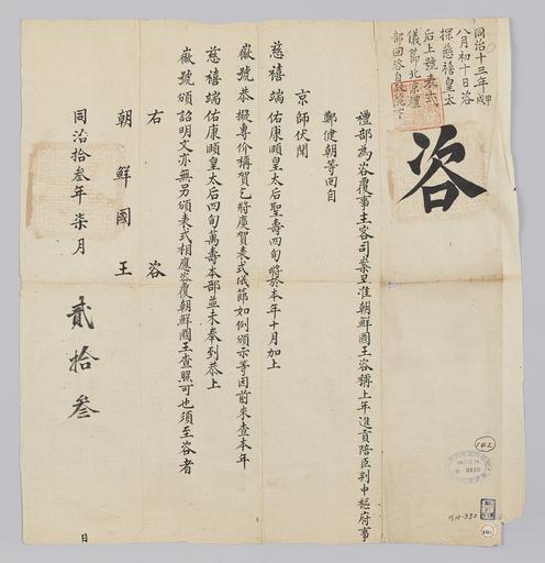 | Keywords: 조선-청 외교문서(자문) 252.jpg 고종 11년 1874 7월 23 에 청국 예 에 조선국왕에게 보내 온 문 자 慈禧 황 후 회 回旬 과 상 호를 축하하는 表式 과 절 전 예 같 하 고 알리는 내용 다 2016-07-19 http //www nl go kr/nl/search/SearchDetail nl category_code ct service KOLIS vdkvgwkey 43337394 colltype DAN_OLD place_code_info 172 place_name_info EB 94 94 EC A7 80 ED 84 B8 EC 97 B4 EB 9E 8C EC 8B A4 manage_code MA shape_code B refLoc null category srchFlag Y h_kwd E5 8F A4 E6 9C 9D51- EB 8B A428-330 lic_yn N mat_code RB 국립중앙도 청국 예 급 other versions PD-Art Books from National Library of Korea Books from Korea 1874 in Relations of the Joseon Dynasty and the Qing Dynasty |