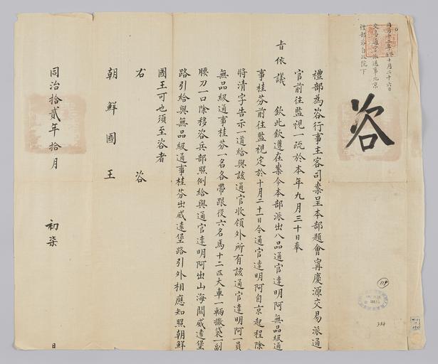 | Keywords: 조선-청 외교문서(자문) 260.jpg 고종 10년 1873 10월 7 에 청국 예 에 조선국왕에게 보내 온 문 회녕 寗 ·경원 慶源 에 교역하는데 8품 통 官 달명아 達明阿 무품급 통 계분 桂芬 파견 다고 알리는 내용 다 2016-07-19 http //www nl go kr/nl/search/SearchDetail nl category_code ct service KOLIS vdkvgwkey 1130323 colltype DAN_OLD place_code_info 172 place_name_info EB 94 94 EC A7 80 ED 84 B8 EC 97 B4 EB 9E 8C EC 8B A4 manage_code MA shape_code B refLoc null category srchFlag Y h_kwd E5 8F A4 E6 9C 9D51- EB 8B A428-338 lic_yn N mat_code RB 국립중앙도 조선국왕 청국예 other versions PD-Art Books from National Library of Korea Books from Korea 1873 in Relations of the Joseon Dynasty and the Qing Dynasty |