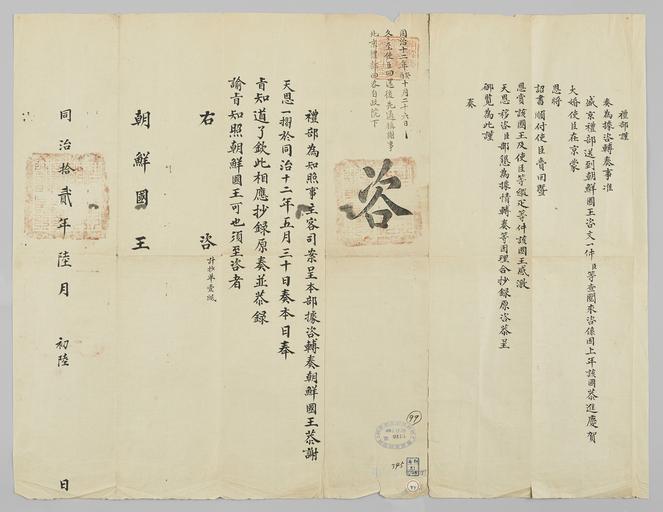 | Keywords: 조선-청 외교문서(자문) 267.jpg 고종 10년 1873 6월 6 에 청국 예 에 조선국왕에게 보내 온 문 해 황 혼에 파견 경하사신 통해 조 비단 내려 것에 해 조선국왕 올린 사 자문 황 에게 아뢰었 알리는 내용 다 2016-07-19 http //www nl go kr/nl/search/SearchDetail nl category_code ct service KOLIS vdkvgwkey 1130343 colltype DAN_OLD place_code_info 172 place_name_info EB 94 94 EC A7 80 ED 84 B8 EC 97 B4 EB 9E 8C EC 8B A4 manage_code MA shape_code B refLoc null category srchFlag Y h_kwd E5 8F A4 E6 9C 9D51- EB 8B A428-345 lic_yn N mat_code RB 국립중앙도 조선국왕 청국예 other versions PD-Art Books from National Library of Korea Books from Korea 1873 in Relations of the Joseon Dynasty and the Qing Dynasty |