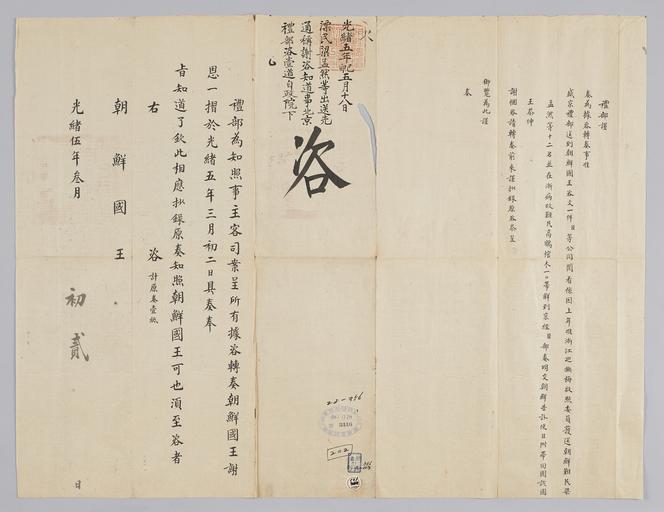 | Keywords: 조선-청 외교문서(자문) 278.jpg 고종 16년 1879 3월 2 에 청국 예 에 조선국왕에게 보내 온 문 작년 절강 浙江 에 호송되어 온 조선 민 양맹연 梁孟然 등 10명 돌려보내 것에 해 조선국왕 올린 사 를 황 에게 아뢰었 알리는 내용 다 2016-07-19 http //www nl go kr/nl/search/SearchDetail nl category_code ct service KOLIS vdkvgwkey 1130102 colltype DAN_OLD place_code_info 172 place_name_info EB 94 94 EC A7 80 ED 84 B8 EC 97 B4 EB 9E 8C EC 8B A4 manage_code MA shape_code B refLoc null category srchFlag Y h_kwd E5 8F A4 E6 9C 9D51- EB 8B A428-356 lic_yn N mat_code RB 국립중앙도 조선국왕 청국예 other versions PD-Art Books from National Library of Korea Books from Korea 1879 in Relations of the Joseon Dynasty and the Qing Dynasty |