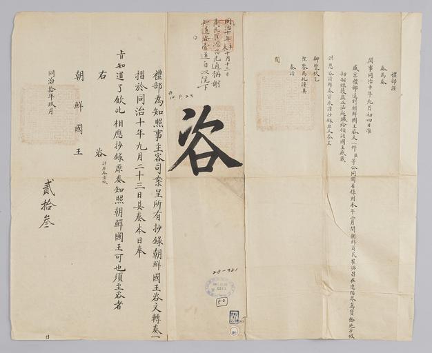 | Keywords: 조선-청 외교문서(자문) 298.jpg 고종 8년 1871 9월 23 에 청국 예 에 조선국왕에게 보내 온 문 2월 조선 상민 商民 원창 崔源昌 요양 遼陽 역에 피겁 被劫 되었던 바 를 잘 처리해 데 조선국왕 올린 감사 문 황 에게 올렸 알리는 내용 다 2016-07-19 http //www nl go kr/nl/search/SearchDetail nl category_code ct service KOLIS vdkvgwkey 1130392 colltype DAN_OLD place_code_info 172 place_name_info EB 94 94 EC A7 80 ED 84 B8 EC 97 B4 EB 9E 8C EC 8B A4 manage_code MA shape_code B refLoc null category srchFlag Y h_kwd E5 8F A4 E6 9C 9D51- EB 8B A428-381 lic_yn N mat_code RB 국립중앙도 조선국왕 청국예 other versions PD-Art Books from National Library of Korea Books from Korea 1871 in Relations of the Joseon Dynasty and the Qing Dynasty |
