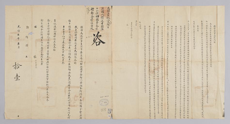 | Keywords: 조선-청 외교문서(자문) 294.jpg 고종 16년 1879 7월 11 에 청국 예 에 조선국왕에게 보내 온 문 조선에 붙잡 법국 法 人 프랑스 교사 敎士 진승崔鎭 명 올돌 乭 V M Deguette 방하여 중국 해구 海口 보내 고 알리는 내용 다 고종실 16권 1879년 4월 11 기사에 하면 공주 방에 기찰에 해 프랑스 사람 올돌 체포되어 포도청에 갇 있는데 주 義州 에 넘겨 봉성 鳳城 압송하 고 되어있다 2016-07-19 http //www nl go kr/nl/search/SearchDetail nl category_code ct service KOLIS vdkvgwkey 1130094 colltype DAN_OLD place_code_info 172 place_name_info EB 94 94 EC A7 80 ED 84 B8 EC 97 B4 EB 9E 8C EC 8B A4 manage_code MA shape_code B refLoc null category srchFlag Y h_kwd E5 8F A4 E6 9C 9D51- EB 8B A428-377 lic_yn N mat_code RB 국립중앙도 조선국왕 청국예 other versions PD-Art Books from National Library of Korea Books from Korea 1879 in Relations of the Joseon Dynasty and the Qing Dynasty |