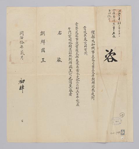 | Keywords: 조선-청 외교문서(자문) 304.jpg 고종 8년 1871 2월 4 에 청국 예 에 조선국왕에게 보내 온 문 조선에 파견 사신들에게 포상하고 연회를 베 었다고 알리는 내용 다 2016-07-19 http //www nl go kr/nl/search/SearchDetail nl category_code ct service KOLIS vdkvgwkey 1130413 colltype DAN_OLD place_code_info 172 place_name_info EB 94 94 EC A7 80 ED 84 B8 EC 97 B4 EB 9E 8C EC 8B A4 manage_code MA shape_code B refLoc null category srchFlag Y h_kwd E5 8F A4 E6 9C 9D51- EB 8B A428-387 lic_yn N mat_code RB 국립중앙도 조선국왕 청국예 other versions PD-Art Books from National Library of Korea Books from Korea 1871 in Relations of the Joseon Dynasty and the Qing Dynasty |