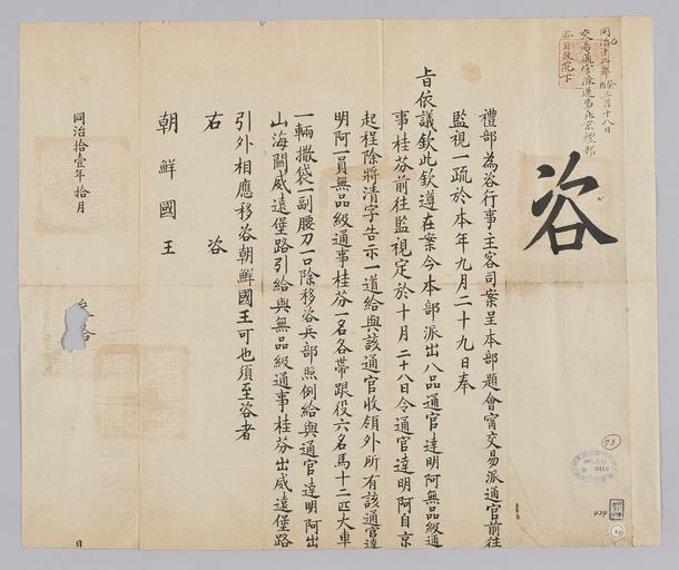 | Keywords: 조선-청 외교문서(자문) 329.jpg 고종 9년 1872 10월 30 에 청국 예 에 조선국왕에게 보내 온 문 회녕 寗 교역에 통 官 8품 달명아 達明阿 무품급 無品級 통사 事 계분 桂芬 파견함 알리는 문 다 2016-07-19 http //www nl go kr/nl/search/SearchDetail nl category_code ct service KOLIS vdkvgwkey 1130369 colltype DAN_OLD place_code_info 172 place_name_info EB 94 94 EC A7 80 ED 84 B8 EC 97 B4 EB 9E 8C EC 8B A4 manage_code MA shape_code B refLoc null category srchFlag Y h_kwd E5 8F A4 E6 9C 9D51- EB 8B A428-424 lic_yn N mat_code RB 국립중앙도 조선국왕 청국예 other versions PD-Art Books from National Library of Korea Books from Korea 1871 in Relations of the Joseon Dynasty and the Qing Dynasty |